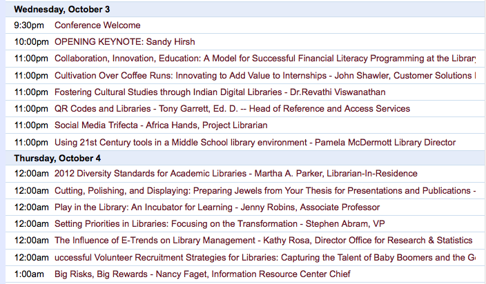 http://www.library20.com/page/library-2-0-schedule-gmt-8-1
