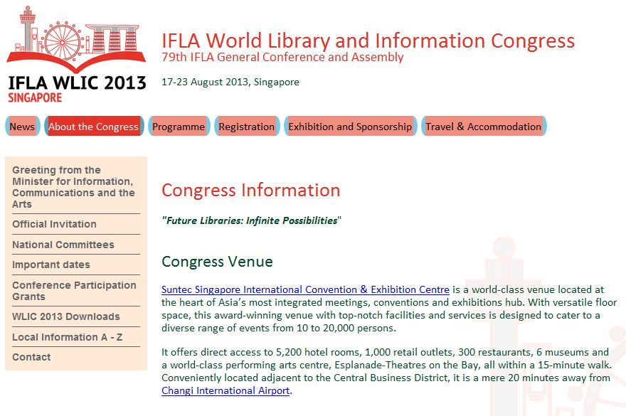 The International Federation of Library Associations will be holding its world congress here in Singapore in August. The theme is “Future libraries: infinite possibilities.”