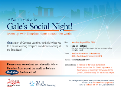 I trust you all heard about this via a Google Group emailing, but tonight Gale Cengage is hosting a reception for all librarians — in connection with the ongoing IFLA Conference here in Singapore.