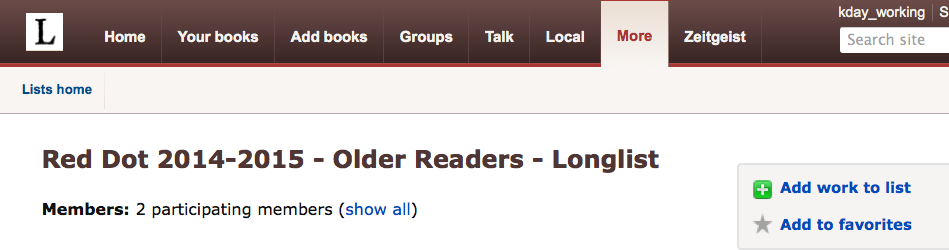 Younger Readers: http://www.librarything.com/list/9662/all/Red-Dot-2014-Younger-Readers-Longlist