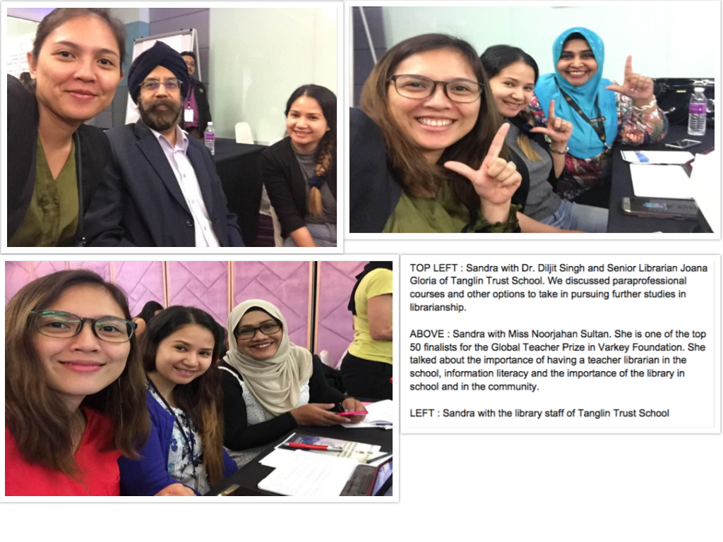 Sandra Sangines is an IT Officer and Library Officer at ISS International School. ISLN was happy to support her attendance at The 3rd Regional Workshop On School Libraries In South East Asia: A Way Forward held in Kuala Lumpur in October 2017